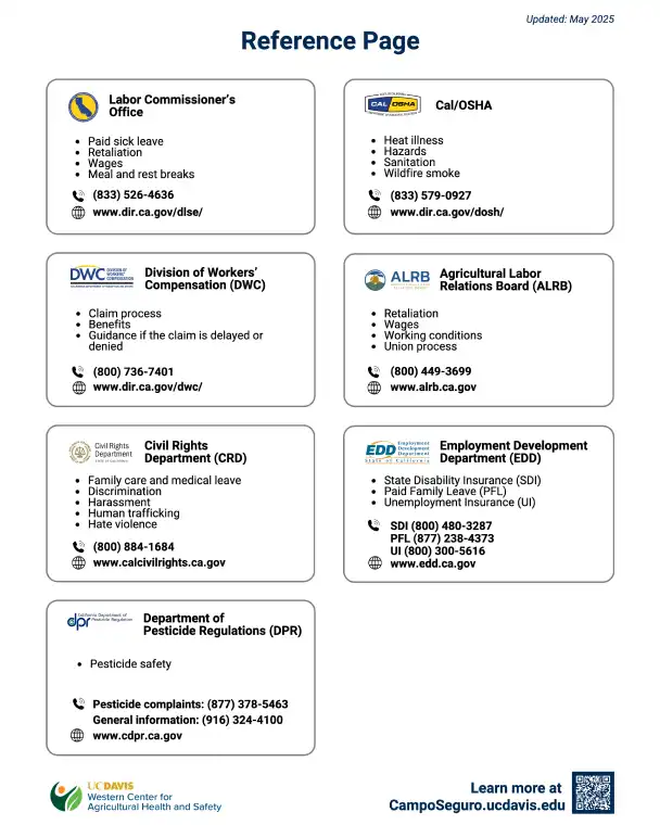 Resources ▶ The following resources provide information about workplace safety and labor topics in different formats. Select a Topic Paid Sick Leave Workers’ Compensation Retaliation Protections Campo Seguro Other Paid Sick LeavePrint Español | English | ਪੰਜਾਬੀ Social Media / WhatsApp Español | English | ਪੰਜਾਬੀ Español | English | ਪੰਜਾਬੀ Español | English | ਪੰਜਾਬੀ Español | English | ਪੰਜਾਬੀ Español | English | ਪੰਜਾਬੀ Español | English | ਪੰਜਾਬੀ Español | English | ਪੰਜਾਬੀ Workers’ CompensationPrint Español | English | ਪੰਜਾਬੀ Social Media / WhatsApp Español | English | ਪੰਜਾਬੀ Español | English | ਪੰਜਾਬੀ Español | English | ਪੰਜਾਬੀ Español | English | ਪੰਜਾਬੀ Español | English | ਪੰਜਾਬੀ Español | English | ਪੰਜਾਬੀ Español | English | ਪੰਜਾਬੀ Español | English | ਪੰਜਾਬੀ Retaliation ProtectionsPrint Español | English | ਪੰਜਾਬੀ Social Media / WhatsApp Español | English | ਪੰਜਾਬੀ Español | English | ਪੰਜਾਬੀ Español | English | ਪੰਜਾਬੀ Español | English | ਪੰਜਾਬੀ Español | English | ਪੰਜਾਬੀ Español | English | ਪੰਜਾਬੀ Campo SeguroPrint Español | English | ਪੰਜਾਬੀ Español | English | ਪੰਜਾਬੀ Social Media / WhatsApp Español | English | ਪੰਜਾਬੀ Español | English | ਪੰਜਾਬੀ OtherReference sheet Español | English | ਪੰਜਾਬੀ More Topics ▶ Back ▶